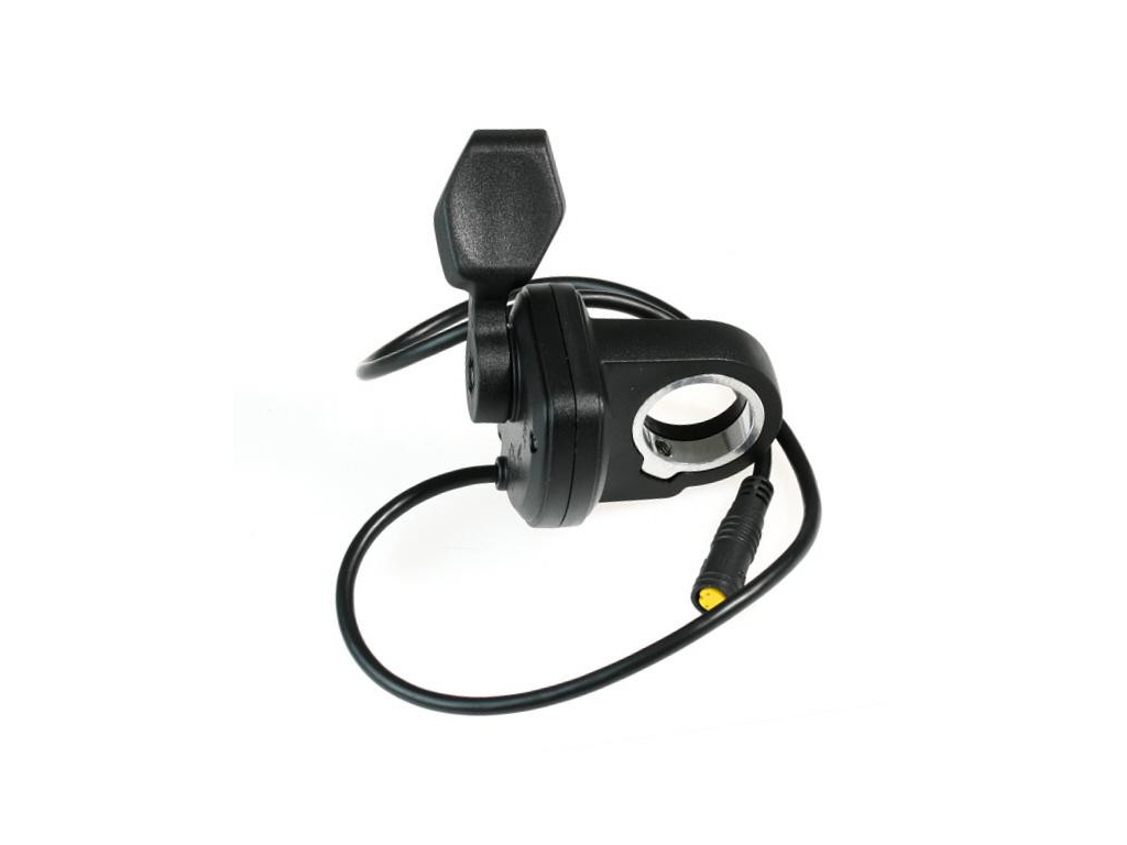 Akcelerační páčka se umisťuje se na levou stranu řídítek a ovládá se jednoduše levým palcem. Pořadí si můžete zvolit sami. Někomu vyhovuje mít akcelátor před ovládáním displeje někomu pravý opak.